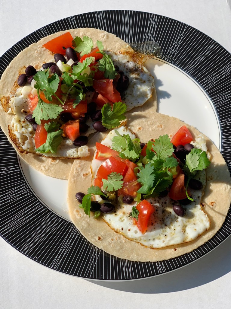 PS: My husband likes his eggs fried but does not like dairy. For my tacos, I use scrambled eggs and add a spoonful of sour cream.