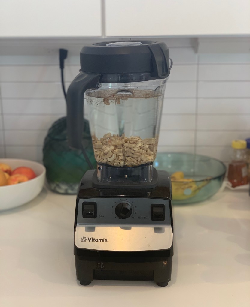 If you are using a Vitamix, you do not have to soak the nuts ahead of time. If using a blender or bullet, I recommend soaking them in water overnight so that they are softer and easier to blend.